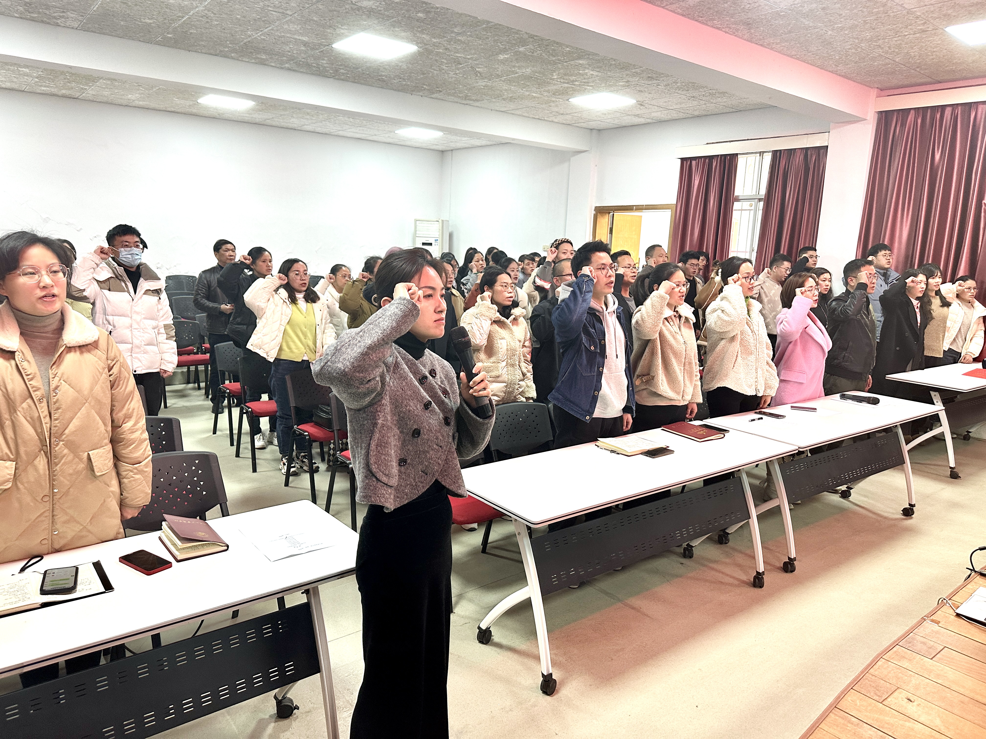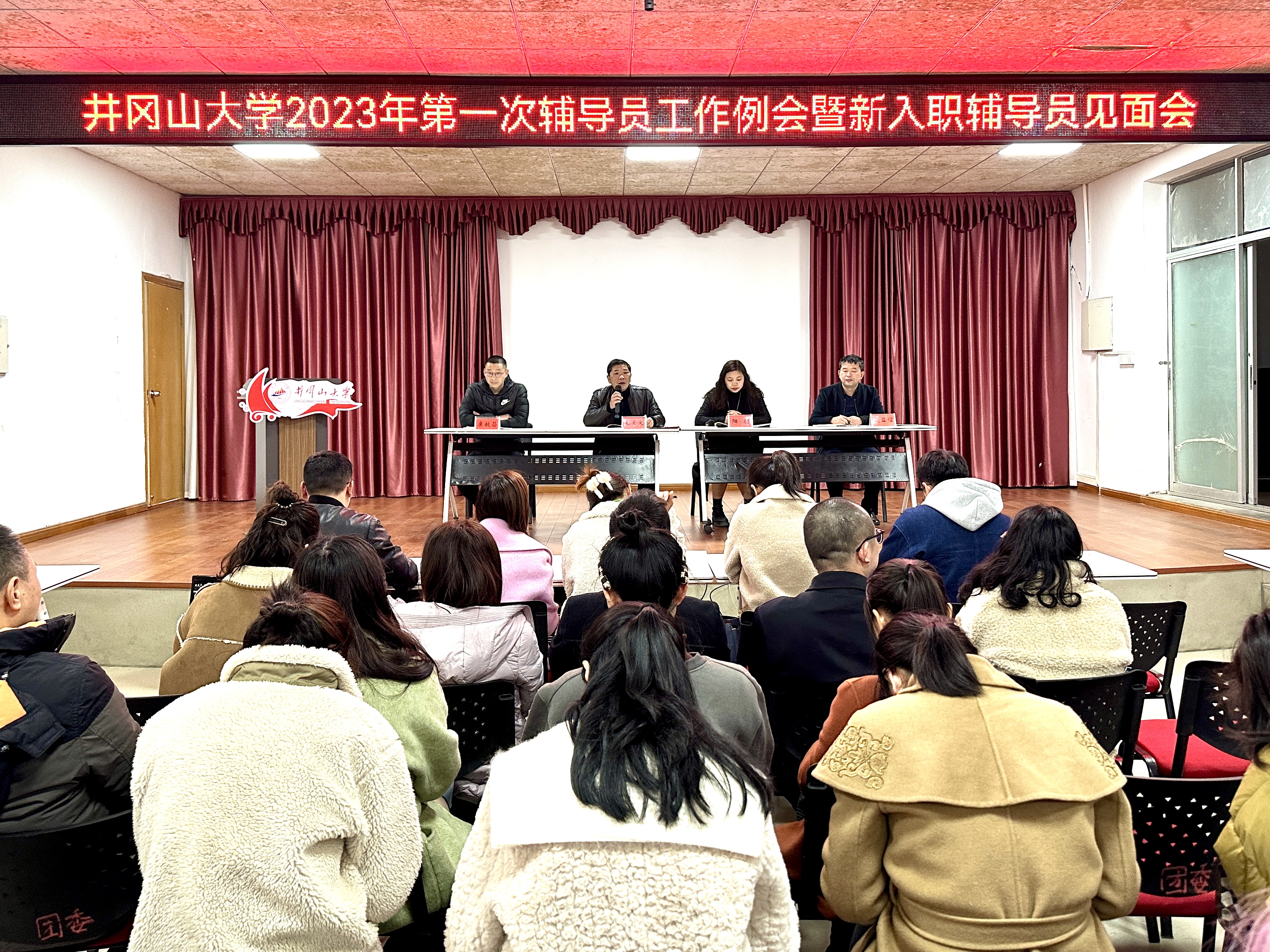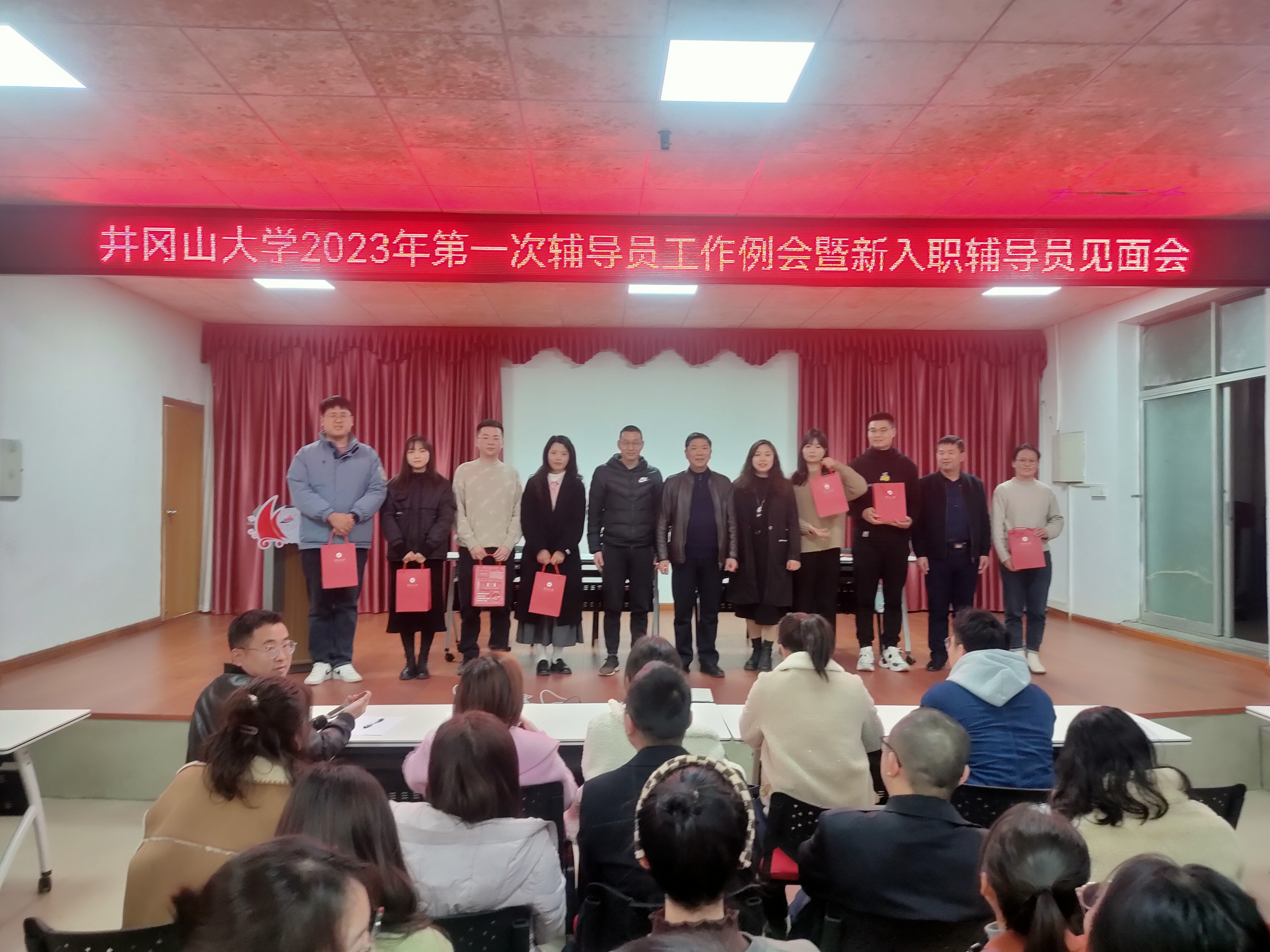 会上,新入职辅导员逐个上台进行自我介绍及交流,学生工作部(处)领导班子对新入职辅导员表示了欢迎,就他们表达出的工作态度给予肯定,并发放了入职小礼包,随后全体辅导员面对高校辅导员誓词进行了宣誓。学生工作部(处)副部(处)长阳朝介绍了2023年辅导员队伍建设及队伍素质能力提升工作总体思路,现场征集井冈山大学红色励志教育教研团队建设方案意见,组建教研团队。同时,就做好网络思政教育职责征集学工新媒体(网络思政)工作团队意向。