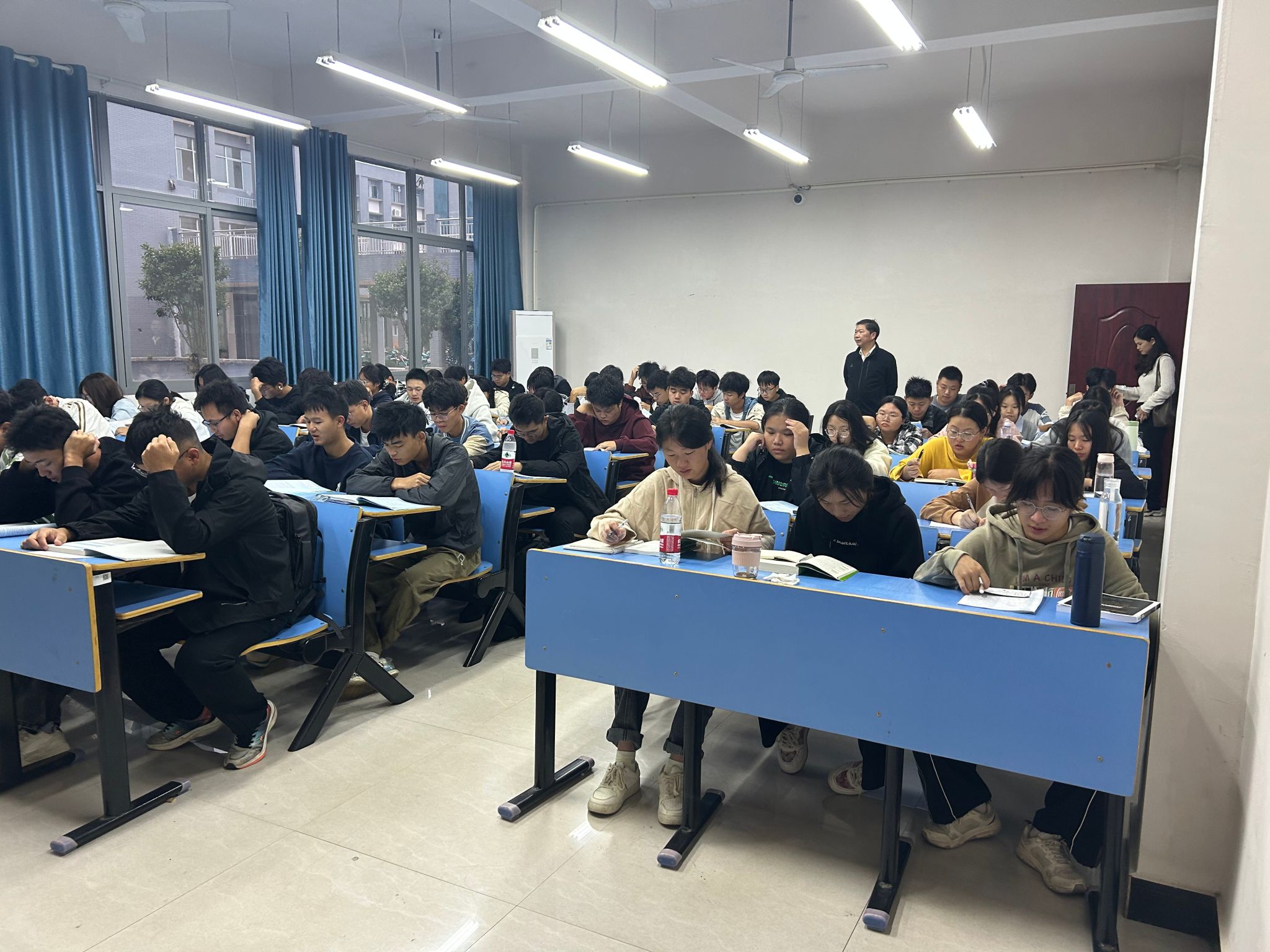 2024年10月8日—10月11日连续4天,学生工作部(处)全体工作人员与各学院分管学生工作领导、学生科科长共计47名学生管理人员组成8个督查小组,深入到全校各班级内部,进入各教室、田径场等场所,开展了“晨读晨练与晚自习”专项督查和校风学风巡查工作,本次巡查工作共计巡查了125个班级,覆盖全校18个教学学院和所有教学楼、学生食堂。此次活动旨在了解各班级晨读晨练和晚自习组织开展、学习氛围、学习纪律以及文明行为等方面情况,把握新学期学生的学习状态,发现校风学风建设中存在的问题,从而有针对性改进。