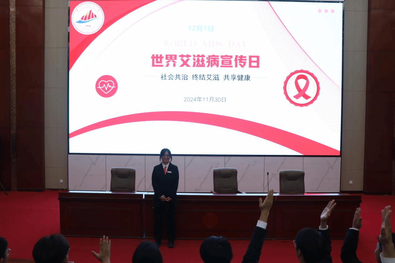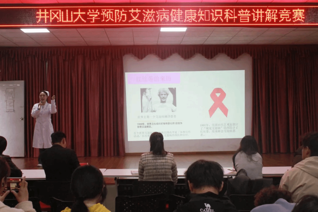 2024年11月30日,井冈山大学学生工作部(处)组织学校一年级学生代表在图书馆报告厅开展了《社会共治 终结艾滋 共享健康-世界艾滋病宣传日》的防艾滋科普知识讲座,同时开展了预防艾滋病知识竞答活动,同学们积极参与答题互动,现场氛围热烈,通过不同形式的活动加深了学生对艾滋病防治的认识。