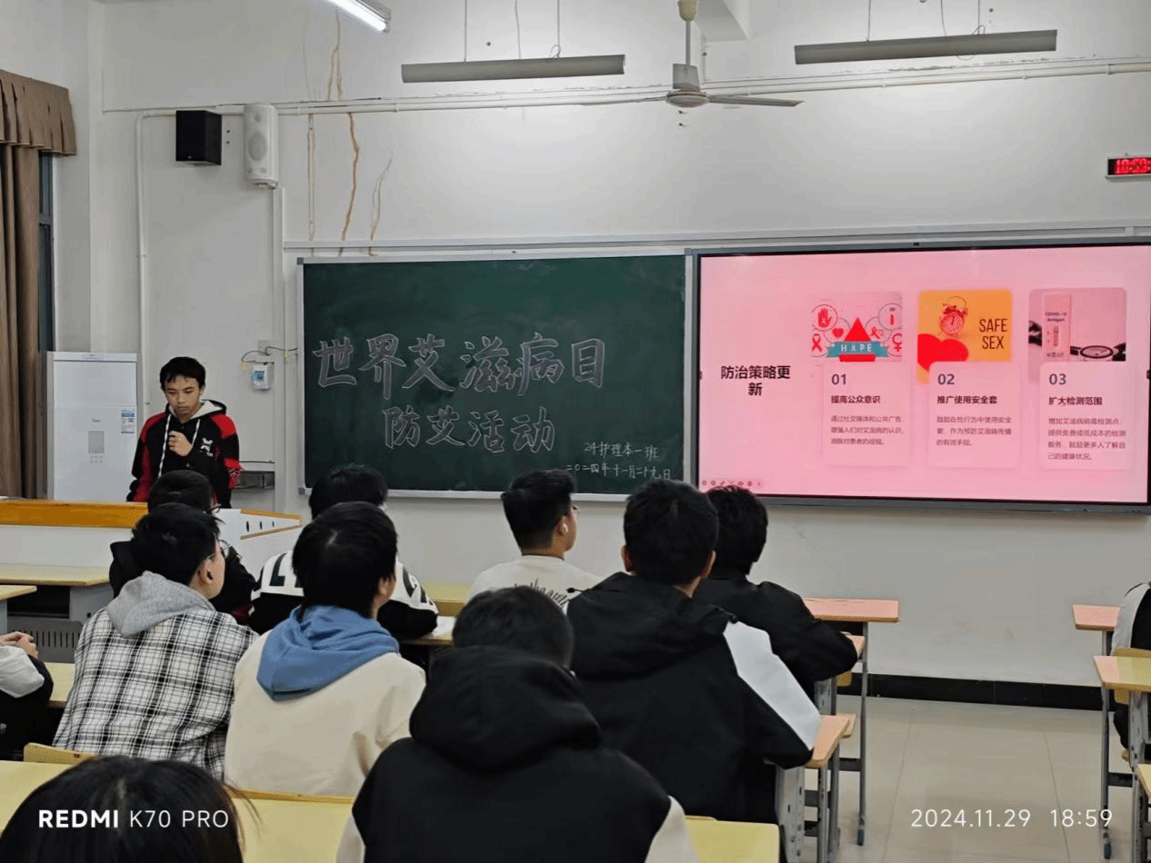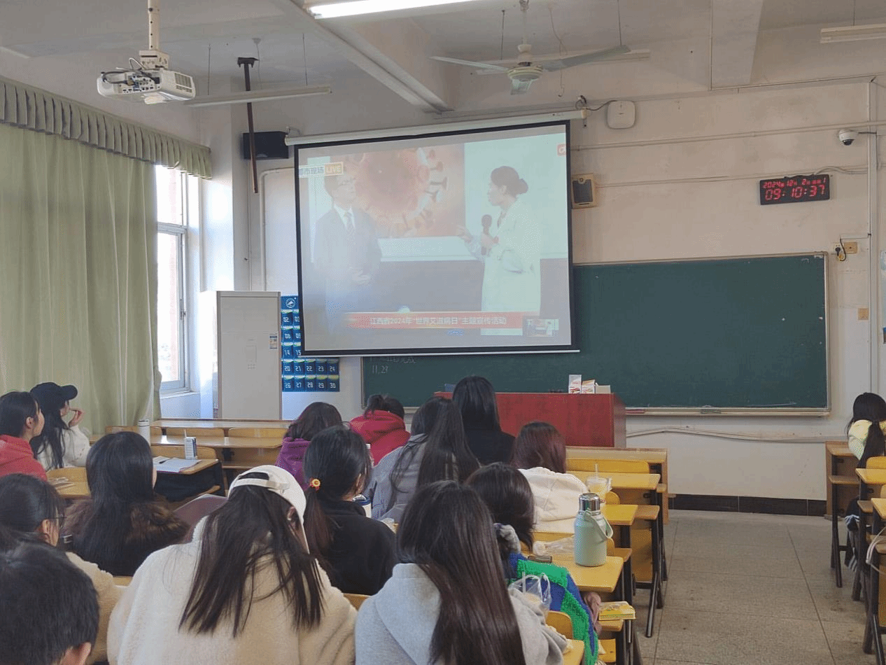 2024年11月30日,各学院积极组织学生通过集中和分散的形式,收看了江西省2024年“世界艾滋病日”主题宣传直播活动,进一步提升了同学们对预防艾滋病知识的认识。