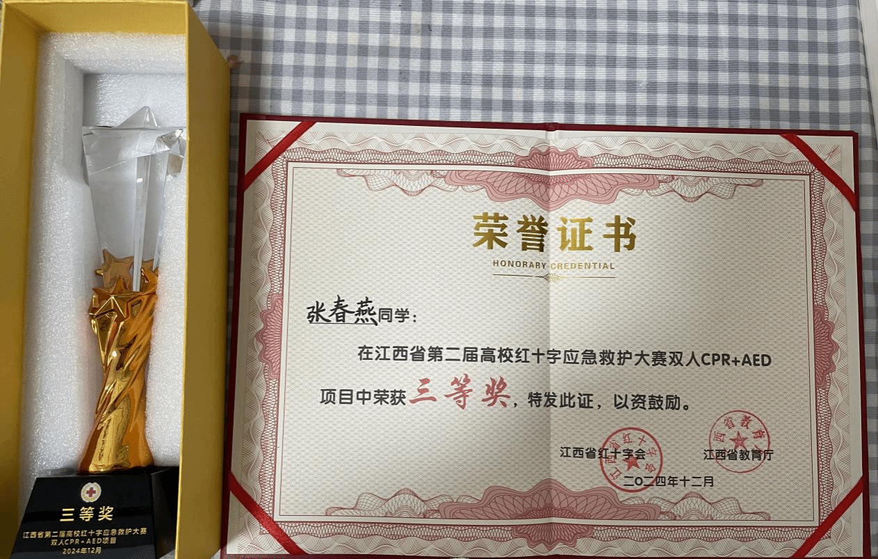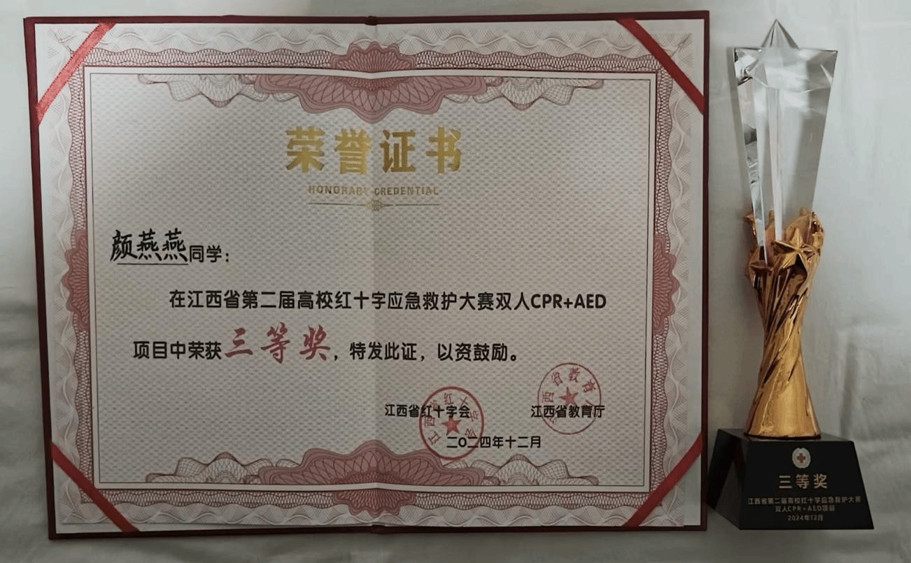 12月16日-17日,江西省第二届高校红十字应急救护大赛在南昌市成功举办,大赛由省红十字会与省教育厅联合主办,共吸引来自全省38所院校参赛队的领队、教练和队员共计300余人参赛。学校红十字会积极组建团队参加了大赛,经激烈角逐,我校参赛学生队员张春燕、颜燕燕荣获双人CPR+AED项目“三等奖”,学校获大赛“优秀组织奖”。