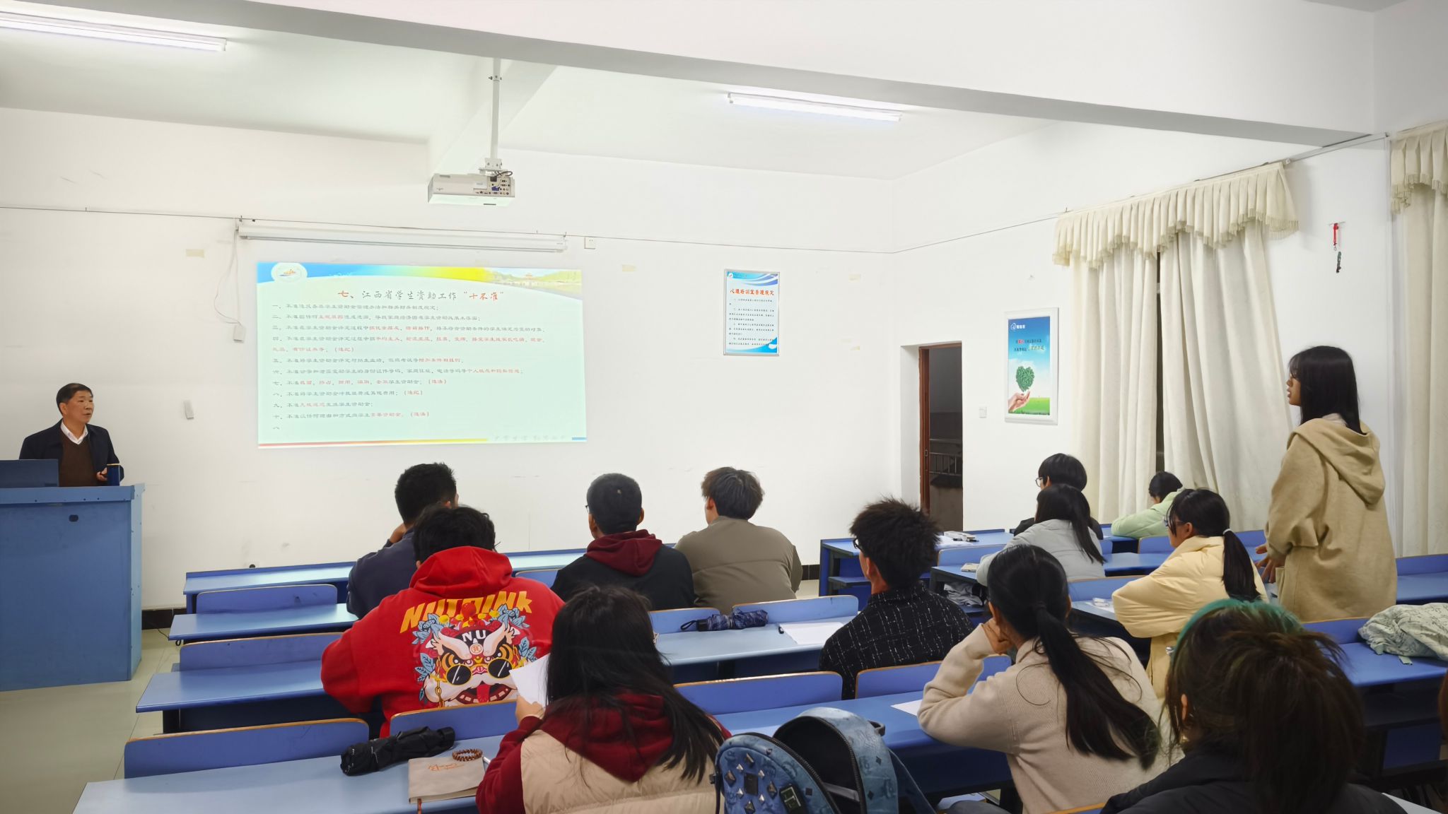 活动的最后,毛金文就学生们提出的违纪处分影响、违纪解除的具体条件要求等问题进行了详细解答。