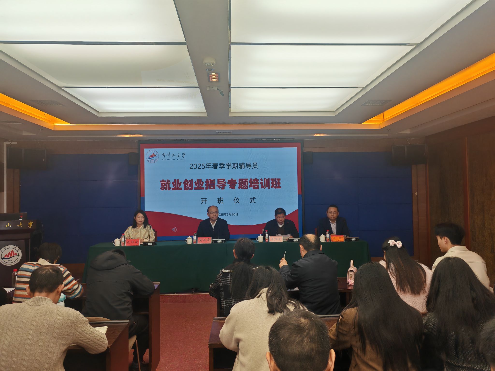 为提高辅导员就业创业指导能力,精准做好学生就业创业工作、提升学校人才培养水平、助力学校申博攻坚,学校在3月20日举行2025年春季学期辅导员就业创业指导专题培训班开班仪式。此次培训由招生就业指导处、创新创业学院、学生工作部(处)联合举办,校党委常委、副校长黄族豪出席并讲话,举办部门相关负责人、全体辅导员参加了开班仪式。