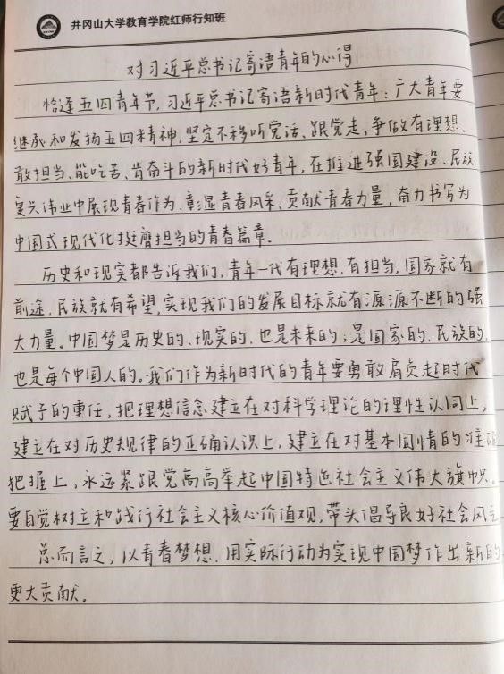 书签活动结束后,各学员们深受五四精神的感染,积极地书写了对习近平总书记寄语青年的心得体会,他们表示,要以五四精神为指引,勤奋学习,努力提高自身素质,为实现中华民族伟大复兴的中国梦贡献青春力量。