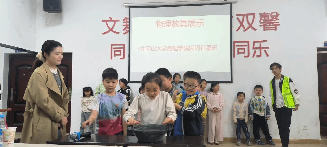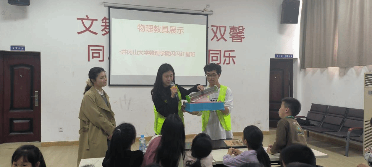 近日,井冈山大学数理学院闪闪红星班志愿服务队走进天玉镇童心港湾,为当地留守儿童开展了一场别开生面的"红色文化润童心,科学探索启智慧"主题志愿活动。通过红色故事宣讲、趣味物理实验展示及课后作业辅导三大板块,为孩子们带来知识与温暖的双重体验。