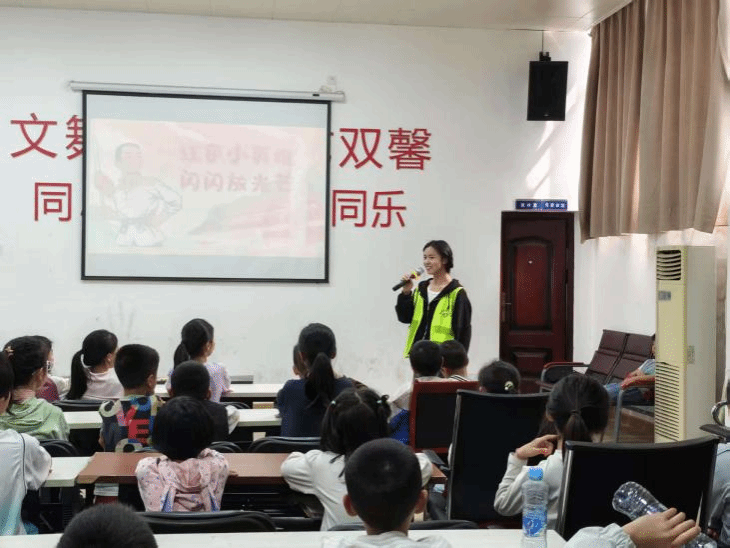 活动以沉浸式红色教育拉开序幕。志愿者通过情景剧形式生动演绎《小英雄雨来》的经典片段,带领孩子们重温少年英雄智斗日寇的英勇事迹。当"雨来"纵身跃入河中躲避追捕时,现场孩子纷纷鼓掌高呼"雨来没有死!",稚嫩的面庞上写满对英雄的崇敬。"长大后我也要当保家卫国的战士!"三年级学生小明在互动环节激动地说道。