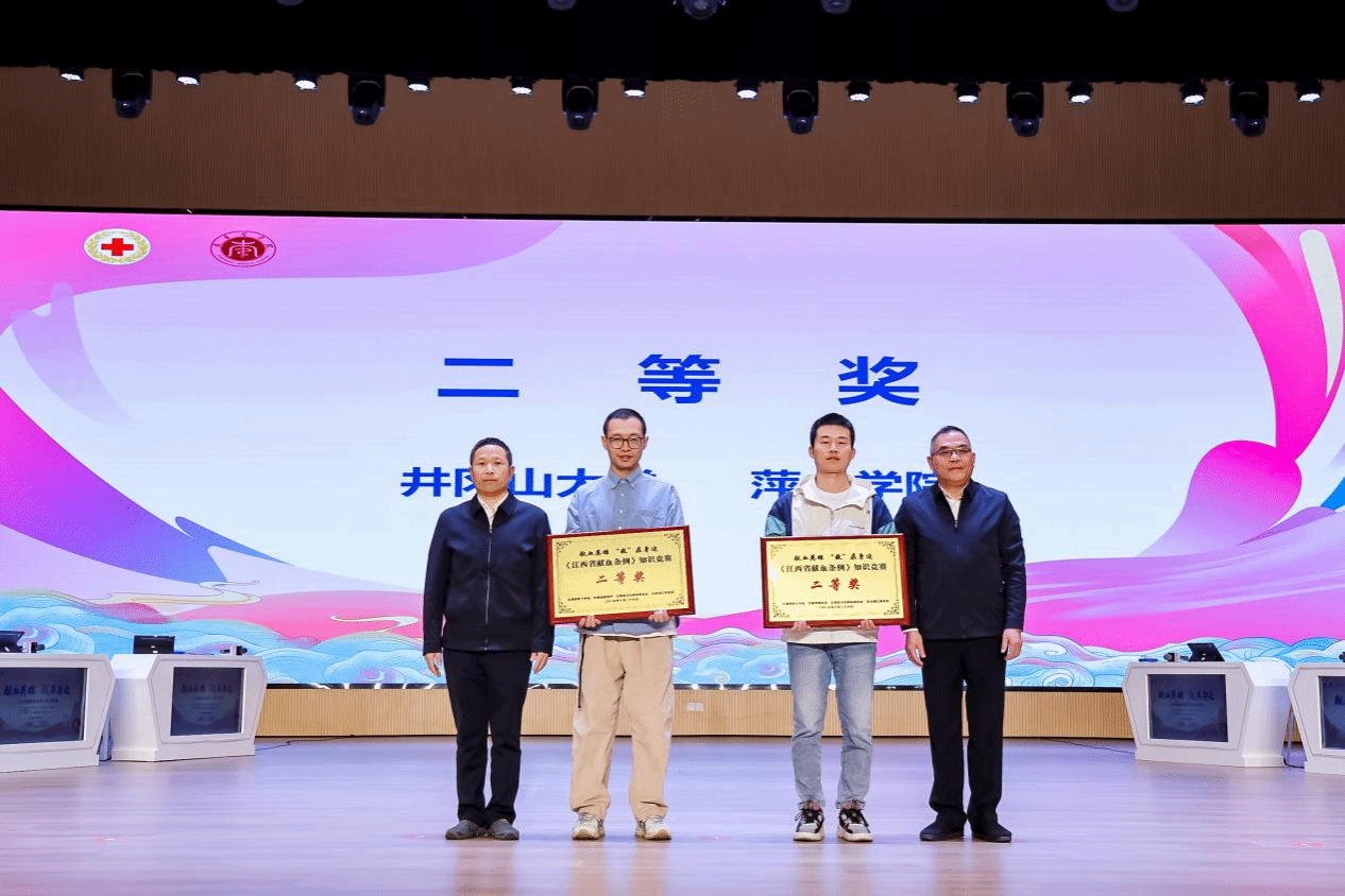 10 月 25 日至 26 日,由江西省红十字会、江西省教育厅、江西省卫生健康委员会、共青团江西省委联合主办,南昌医学院承办的《江西省献血条例》知识竞赛在南昌医学院九龙湖校区圆满落幕。我校代表队凭借扎实的知识储备、出色的团队协作与稳定的临场发挥,从全省23所高校参赛队伍中脱颖而出,荣获比赛二等奖,充分展现了井大师生在无偿献血知识普及与公益担当方面的卓越风采。