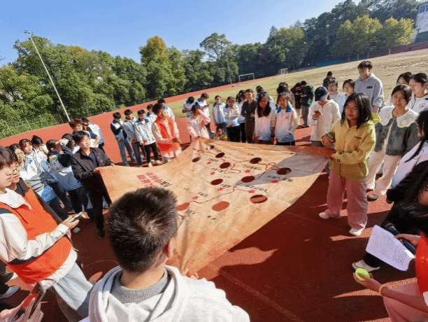 为缓解学生学业压力,促进跨学院交流,2025年11月15日,化学化工学院红井冈班在南区田径场举办了一场别开生面的户外素质拓展活动。活动特邀人文学院、教育学院学生代表共同参与,旨在通过团队协作,帮助同学们在互动中学会沟通、增进理解。