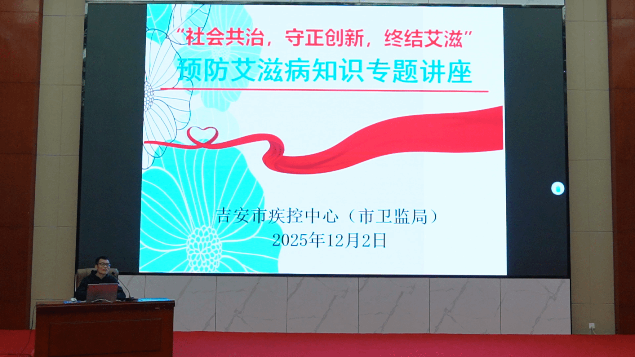 2025年12月2日,井冈山大学在新图书馆报告厅举办预防艾滋病主题教育活动,邀请吉安市疾控中心专家胡冬根作题为“社会共治,守正创新,终结艾滋”的预防艾滋病知识专题讲座,并进行了艾滋病防控知识竞答活动。井冈山大学第二十三期红色励志教育培训班学员及政法学院学生代表共同参加了讲座。