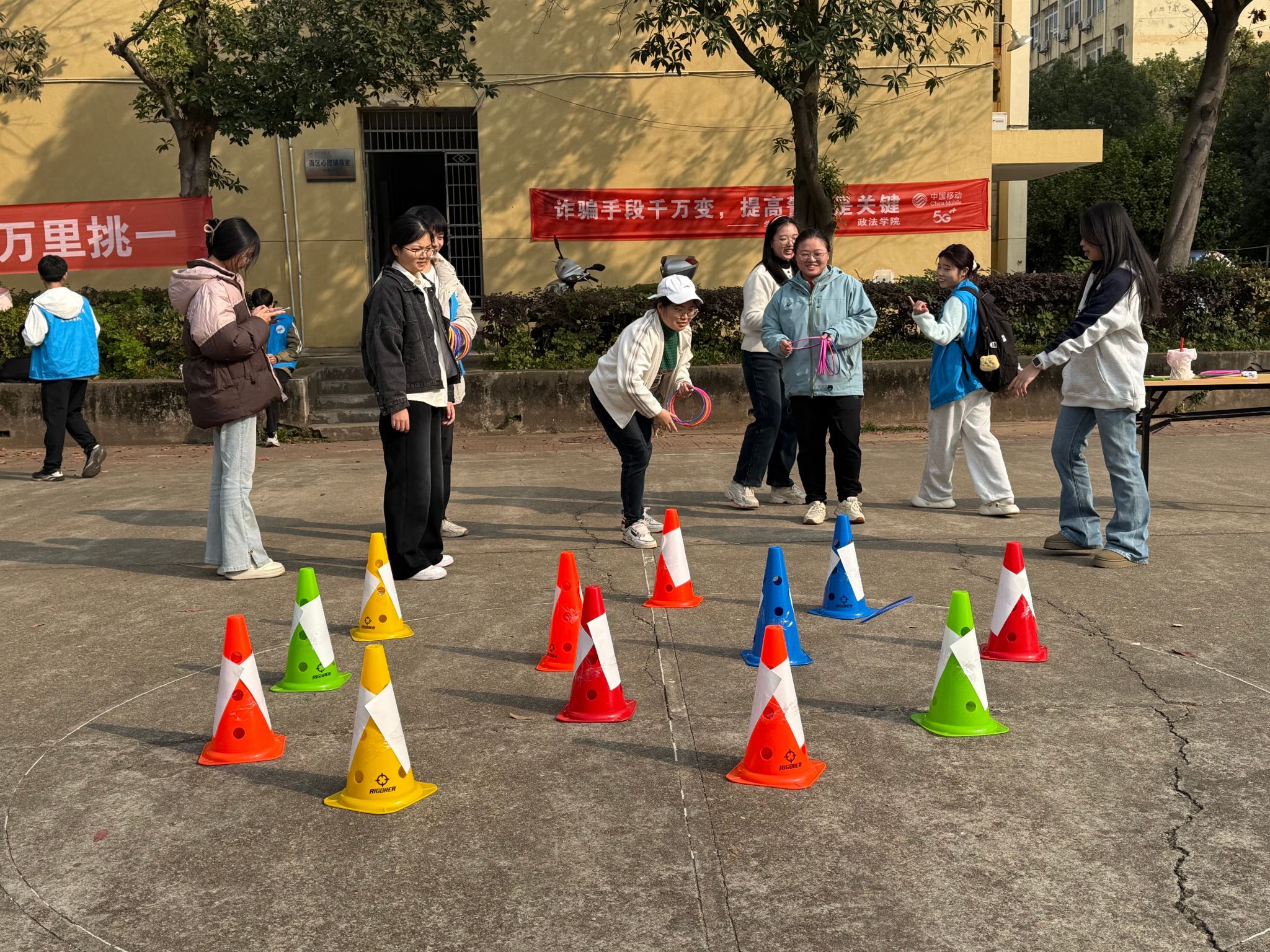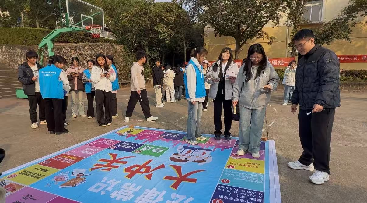 作为系列活动的核心亮点与“重头戏”,“一站式”学生社区以“‘宪’身说法,乐游社区”为主题,打造了一场沉浸式宪法游园会,将宪法知识与趣味游戏深度融合,吸引数百名学生踊跃参与,成为校园里最具人气的法治教育场景。游园会精心设置了宪法知识“套圈答题”、宪法大通关“趣味飞行棋”、宪法条款“叠叠高”、宪法打卡拍照、宪法条款连连看五大特色游戏关卡,每个关卡都暗藏宪法知识考点,让同学们在“玩中学、学中悟”中感受宪法魅力。