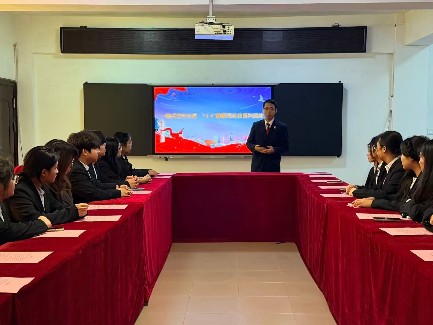 为深入学习贯彻习近平法治思想,大力弘扬宪法精神,增强学生宪法意识和法治素养,在第十二个“12·4”国家宪法日当天,井冈山大学以“一站式”学生社区为核心阵地,精心策划并组织开展了“12·4”国家宪法日系列主题教育活动。本次活动由井冈山大学学生工作部(处)主办、商学院承办,通过理论学习、专业宣讲和社区沉浸式互动的多元方式,让宪法精神从文本走向生活,在校园落地生根、开花结果。