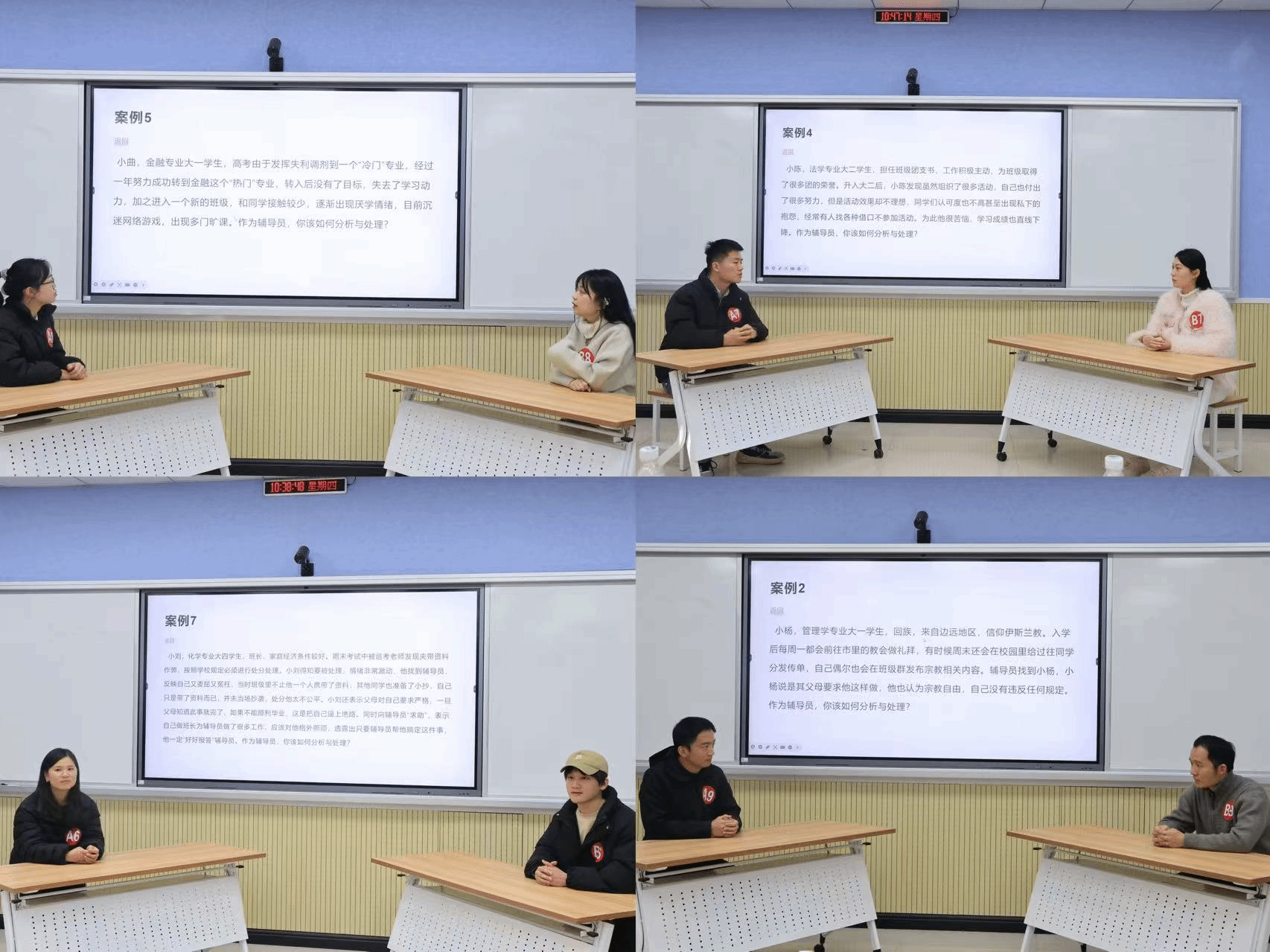 本次大赛分为初赛、复赛和决赛三个阶段,涵盖基础知识测试、学情分析、案例研讨与谈心谈话四个项目,全面考察辅导员的理论功底、分析研判、应急处突和教育引导能力。全校共有74名专职辅导员参与比赛,经过层层选拔,15名表现优秀的辅导员晋级决赛。