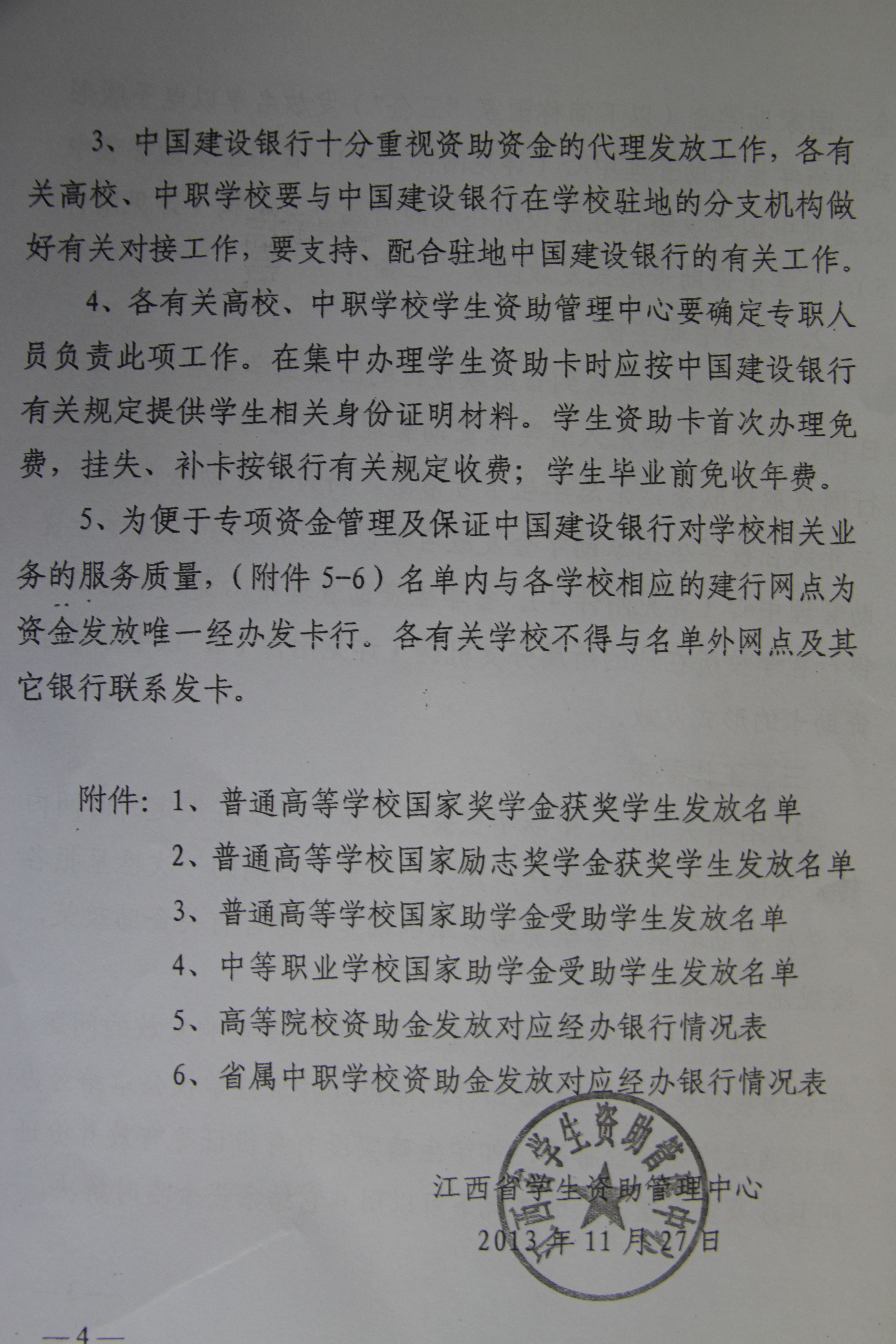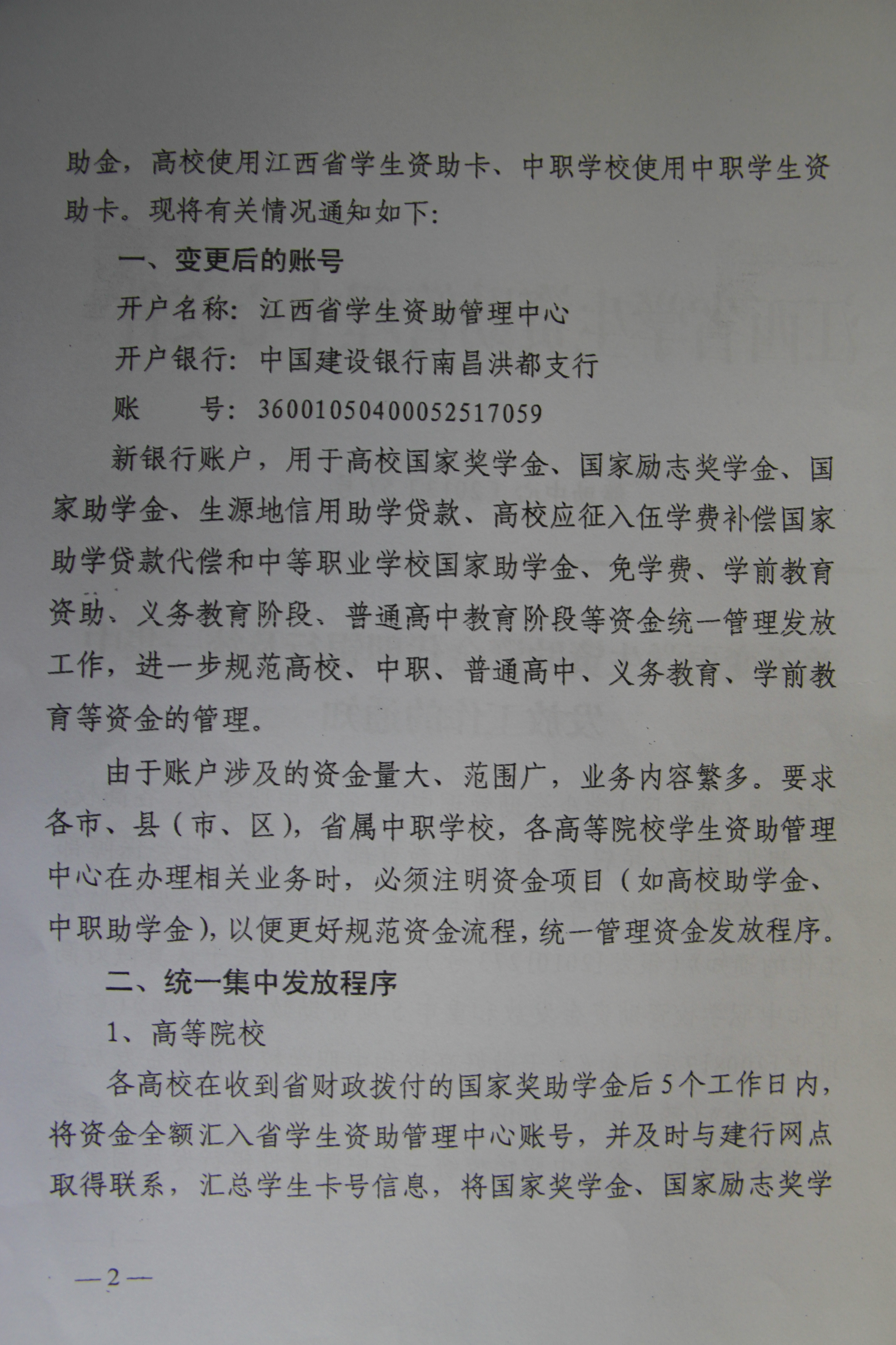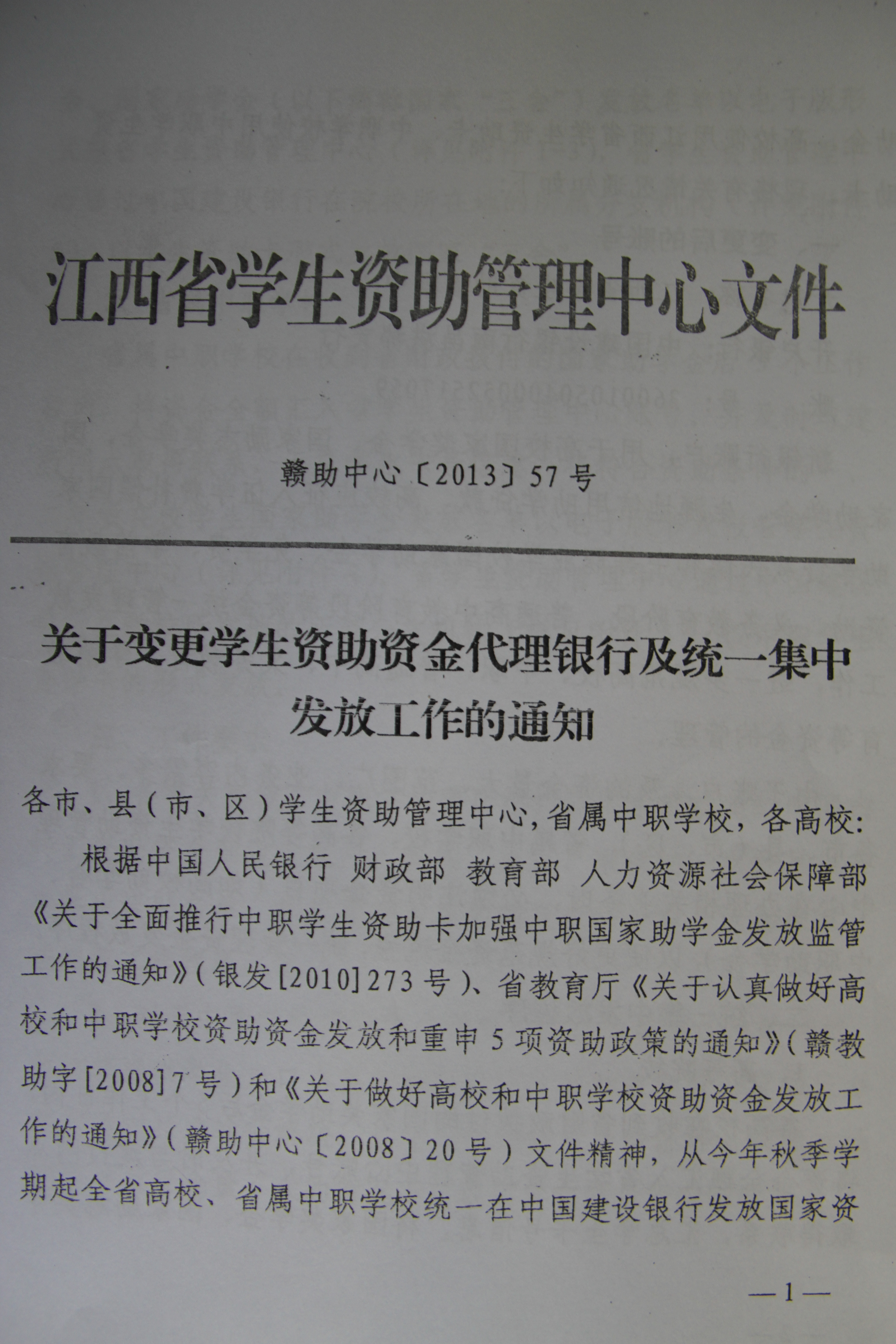 附:江西省学生资助管理中心《关于变更学生资助资金代理银行及统一集中发放工作的通知》(赣助中心[2013]57)