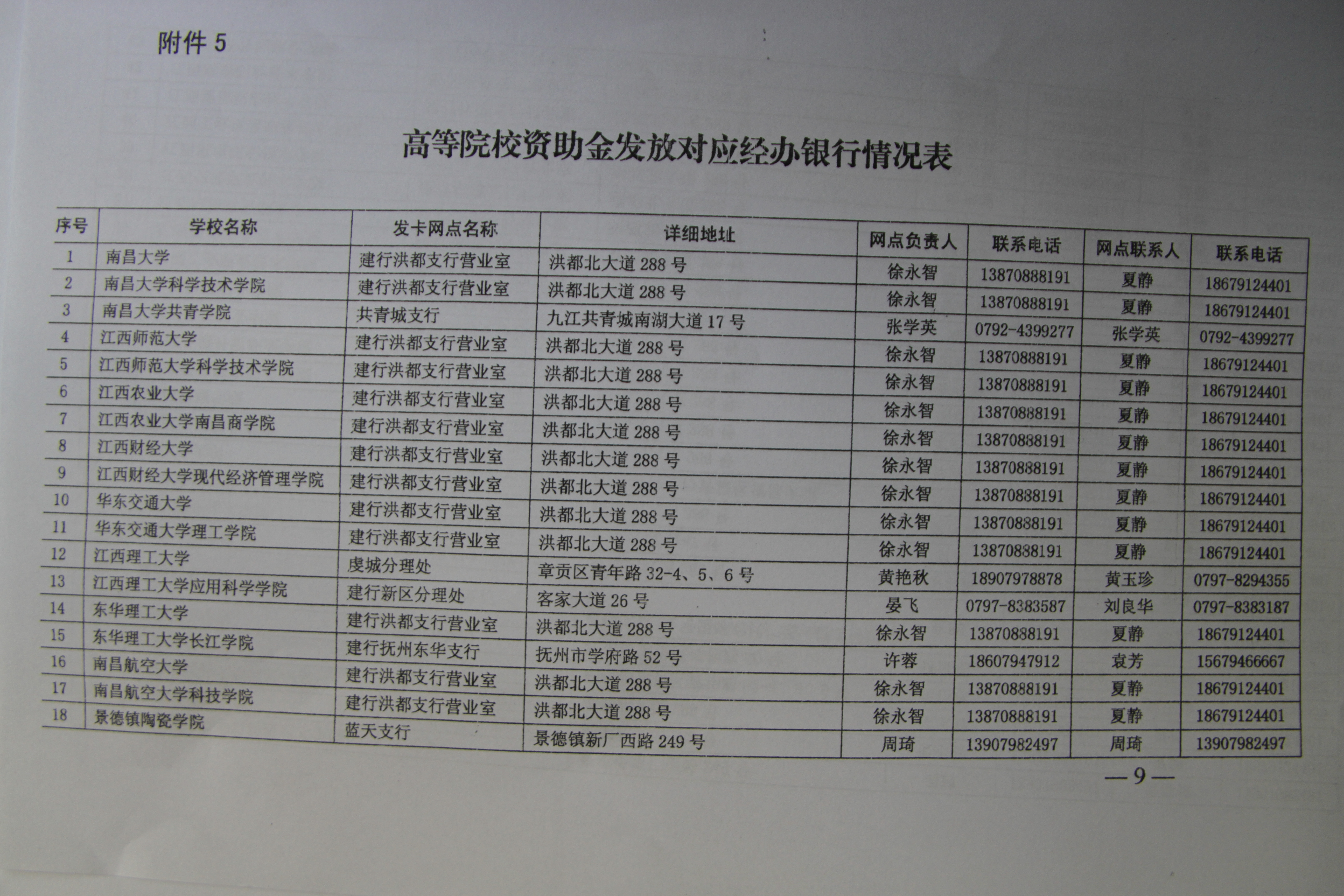 根据江西省学生资助管理中心《关于变更学生资助资金代理银行及统一集中发放工作的通知》(赣助中心[2013]57)号文件精神,从今年秋季学期起全省高校统一在中国建设银行发放国家资助金,使用江西省学生资助卡,并指定我校学生办理资助卡经办银行为中国建设银行吉安分行青原支行。